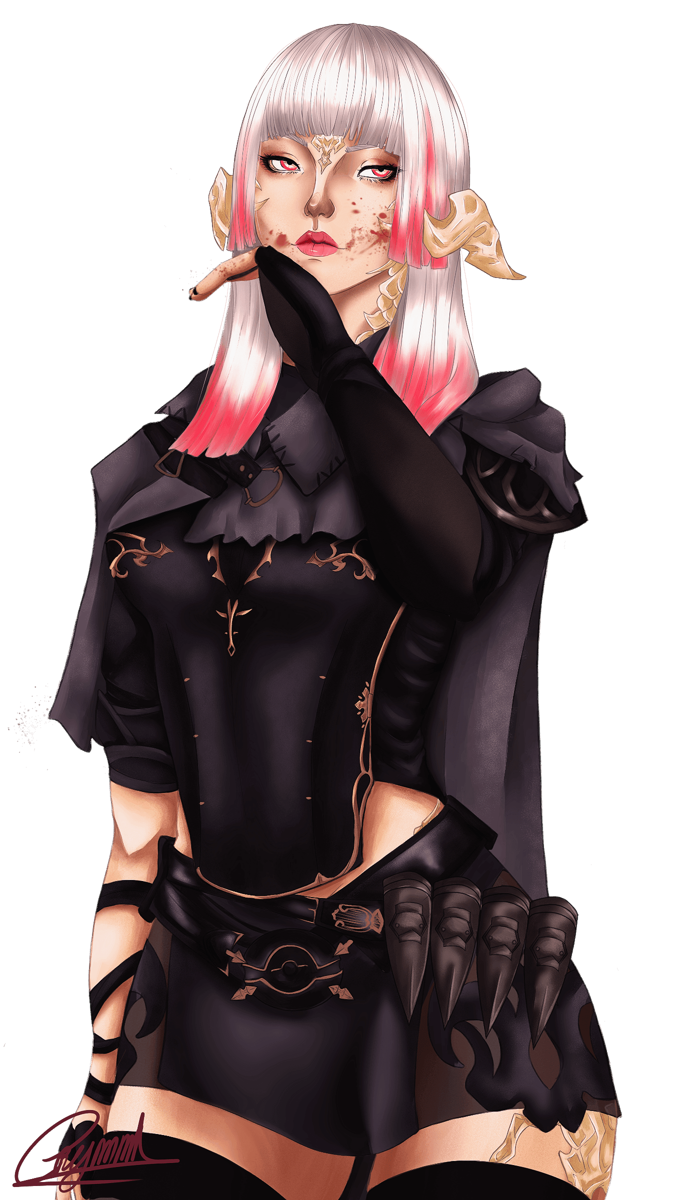 “One..two..three..breathe…Do not forget. To breathe.” Garlean wars and mass destruction have always wiped away civilizations or; tore families apart. For Amako; or Mako for short, she was orphaned once the Garleans invaded during the rule of Kaien Rijin, coming from the west Yanxia of the one river. The Oshidari family resided along the river for generations profiting from pearl farming until it was wiped clean. Hiding as an only child of her family, she could remember the blood leaking through floorboards and the glistening metallic clink of the armor as the soldiers left the rubble of what was left of her families residents. During the night she could hear their screams.“One..two..three..breathe..” After the passing of her family she was orphaned on her own soon she was sent to Kugane nearly after only a few months had passed only at such a young age she was sent to the Ruby Sea. Malms..and Malms below the pressure. The pressure condenses someone's head to madness to serve the young princess Kurenai Shisui, Amako served as a standard servant; washing the floors, cooking, and cleaning. A few years had passed she’d gained a new task closer to Kurenai, becoming a lady in waiting was simply a title she was given first. Though palace life might have seemed grand, even blissful, a simple breaking of a plate caused her to be descaled with a hot knife as a punishment. “Fine Doman Antiques..” They were called. Half of the scales on her back are missing due to her lack of footing as a child when she was a servant for the princess. A man cloaked blacked appeared months later, he wished to bestow a gift to the princess. Though Amako was skeptical at the time even at such a young age, she could only focus on the feeling of pressure on her head that causes her to leave The Princess unattended. This gift invoked the body-double Hisui of the Ruby Princess to be possessed with a voidsent along with all the servants within the Violet Tides. Luckily due to the heightening flight and fight response, Mako was not on the premises but on guard holding a tiny knife along her side for her safety. This man fleeing for the exit; which there was one, the cloaked figure would ignore what seem to be an “ignorant child.” She could see the cloaked figure and her mind triggered. “Go for the kill.”“One..two..three..breathe...Never forget to breathe..” Once the Palace was cleared out of corruption and the body double Hisui was recovered and taken to Sui no Sato, Amako earned a new place alongside the Princess along with a weapon in hand upon her friend's awakening. This opened a new path in Amako's life, a brutal..longing path of destruction that at times she begs to find a way out. Being granted as the new executioner at Shisui; training..executing..training. Over, and over. Repeating it day in and day out until she became of age to leave the tides. The Tides she longed to drown in. Leaving was difficult, but easy. Taking a stand back in Kugane with little to nothing in her pocket she had no work, no experience but blood on her hands. But, the citizens of Kugane knew; they knew who she was and what she was capable of. Contracts. Hired by people to eliminate targets for Gil, copious amount of Gil. Mako first, worked as a Mercenary for some shady businessmen in Kugane who generally would just have a temper and hatred for the people he did business with or disagreed with him, he’d want them eliminated. Job done. Did she dislike her job, Yes? Did she dislike the Gil, No? Years dwelling in the depths of the Ruby Sea drove her to madness causing her to strike on a rampage and assassinate her first boss. Oh, she hated that man…Though this madness caused a set of changes in her mind and appearance; it helped her kill speed, changed her eyes to a crimson red and her hair was a brighter white. Going against Mako in a fight is a trial. Gasping for air struggling, to breathe the trial she faces is always in front of her now, the anger she wears as a mask to hide the burden of the death of her family that weighs heavy on her shoulder from her past, but she must carry on...She is now suffocating.